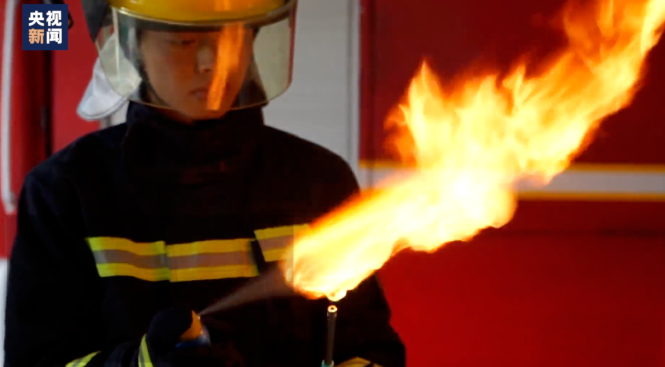 視頻中消防員通過(guò)還原使用噴霧的現(xiàn)場(chǎng)