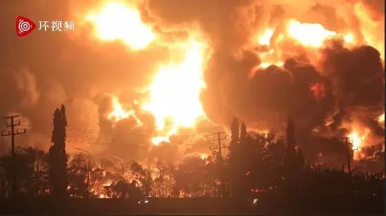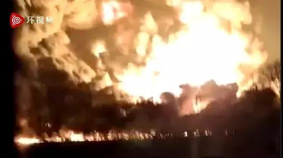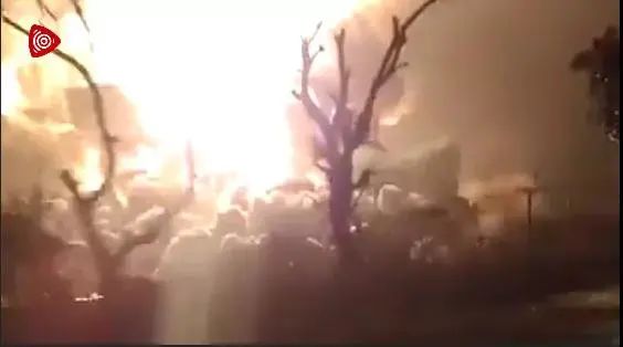 現(xiàn)場視頻顯示,事發(fā)現(xiàn)場濃煙滾滾,火光沖天,當(dāng)?shù)鼐用裾饨兄与x現(xiàn)場。視頻中還能聽到爆炸的聲響。